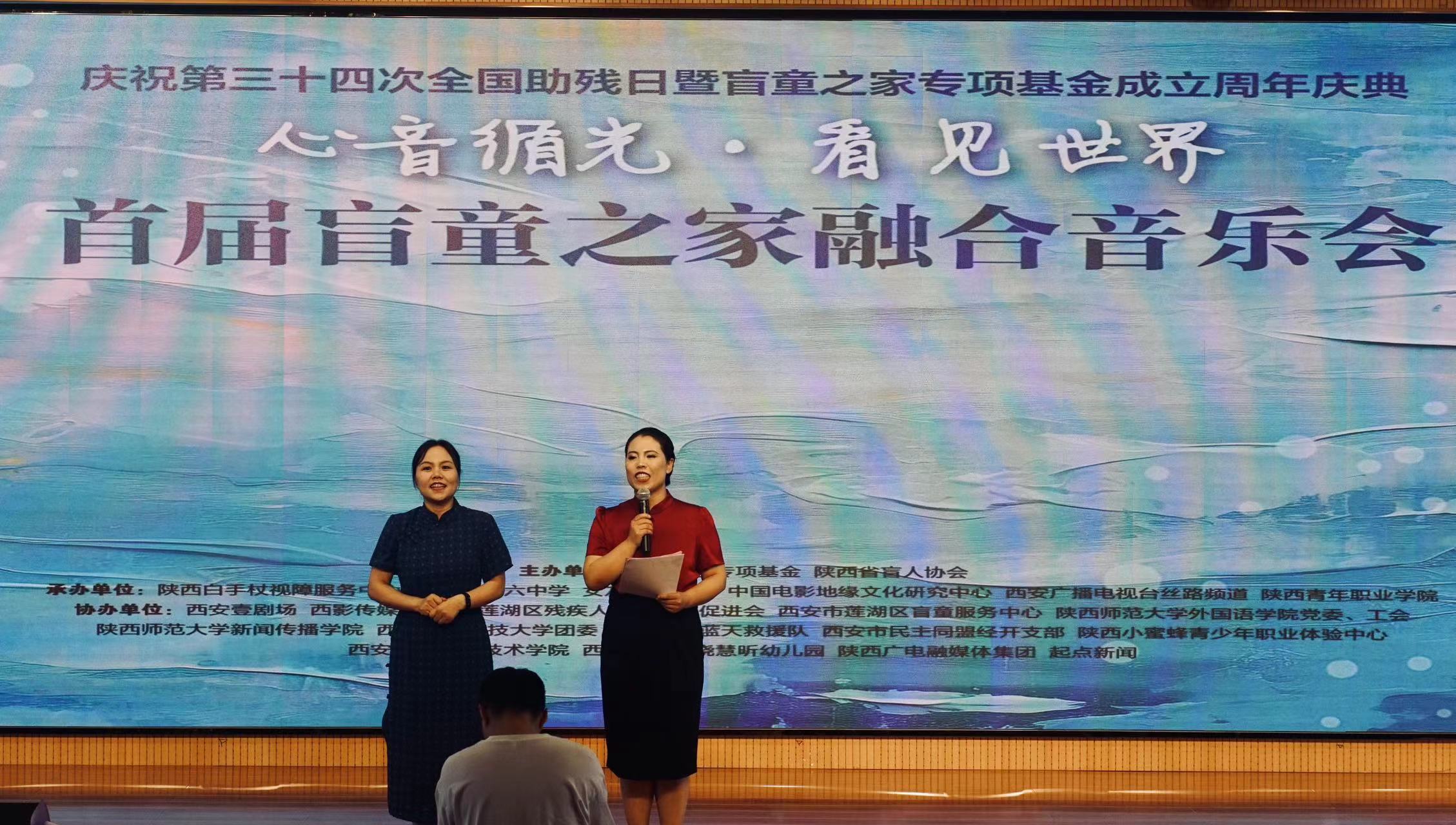 应陕西白手仗视障服务中心与白手仗盲童之家专项基金理事长慧娜的邀请,122cc太阳成集团英语系党支部和公司工会于2024年5月19日参加了在西安市第六中学南校区举办的“心音循光,看见世界”首届盲童之家融合音乐会。英语系党支部书记王艳滨、副书记王立永,大英一支部党支部书记高芬,院工会主席兰军,以及杨金梅、胡哲、陈蕾、罗雅晖、王辉、王艳辉、荣亮、朱丽英等教师,带领研究生及2023级英语优师一班员工志愿者积极参与此次特色主题党日活动。