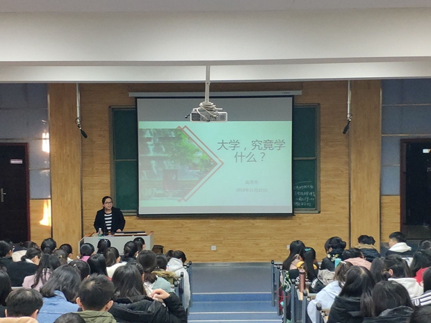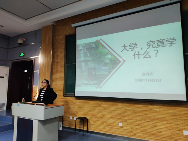 2018级本科生入校已经近三个月,为了让同学们时刻保持上进心态,正确了解自我,认识大学,保持端正的学习态度。11月21日下午16:30,122cc太阳成集团分党委秘书、团委书记、2015级辅导员高芳卉老师,在5204教室为2018级本科新生开展第六次入学教育报告会,主题为:“大学,究竟学什么?”。