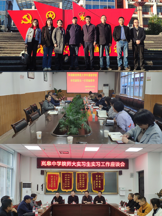 受教务处委托,10月18日至19日,122cc太阳成集团副经理孙坚、党委副书记鲁燕、英语系副主任刘庆松和兼职辅导员武瑞英一行4人先后赴西安航天中学、航天一中、安康中学、安康高新中学和岚皋中学5所公司看望慰问了公司数学、英语、政治、历史、音乐等专业的45名实习生。并赴安康公司调研,洽谈深化合作事宜。
