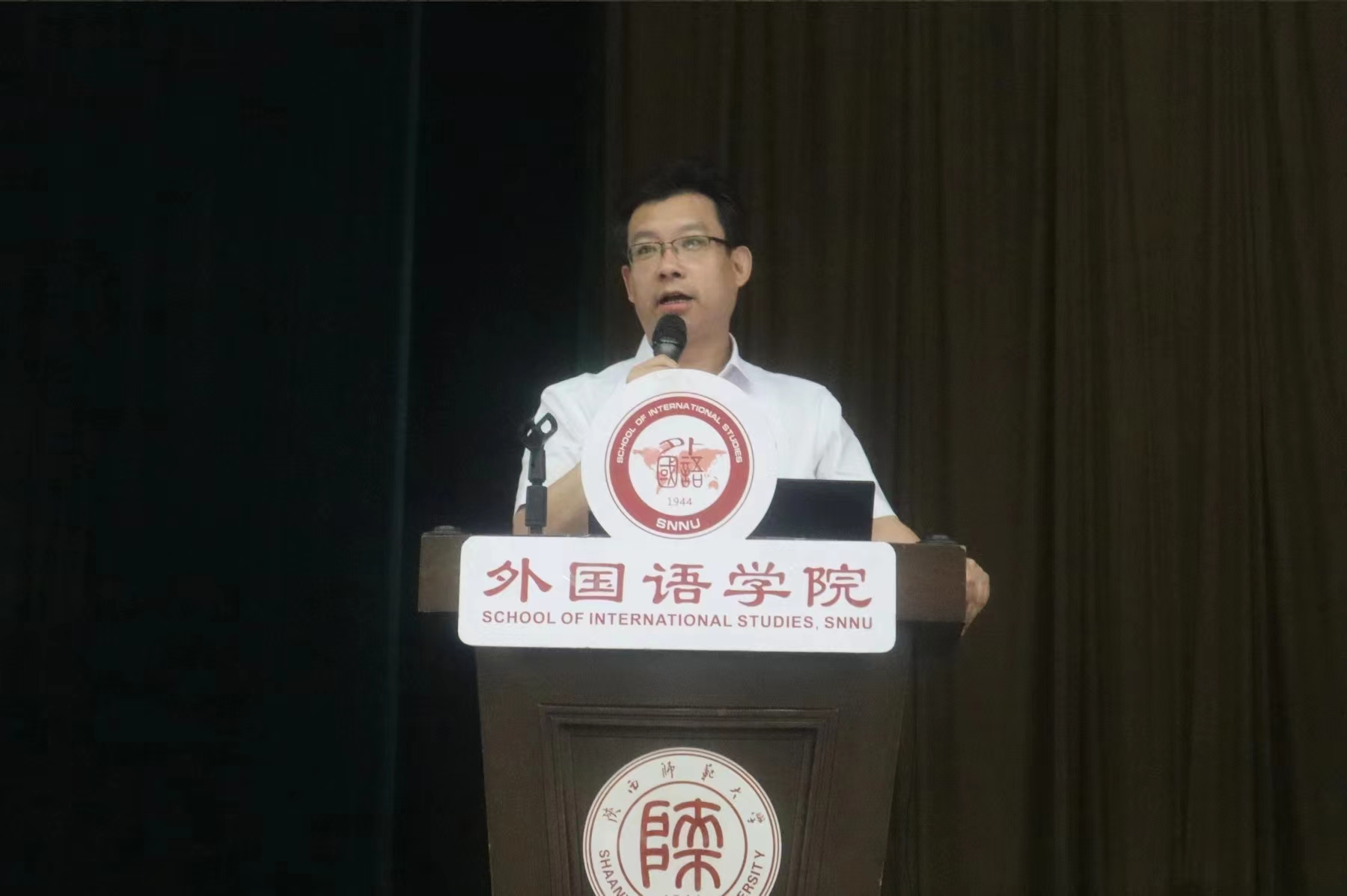 随后,122cc太阳成集团经理刘全国教授为新生讲授了《相遇长安,逐梦陕师,开启精彩外语人生》入学教育第一课。经理以电影《长安三万里》入题,介绍了西安这座城市的独特魅力及其在中国历史上的重要地位,强调了西安的文化底蕴、城市变迁和现代化建设成就,鼓励学子珍视在西安学习的机会,增强文化自信。接着,他强调了外语学习的重要性,指出学习外语不仅仅是掌握技能,更是搭建文化理解和跨文化交流的桥梁,提醒同学们要注重汉语学习的基础性作用和多语种学习的必要性,通过文学阅读、文化理解来提升个人魅力和思维能力。最后经理又对同学们提出了做博艺人、多语人、国际人、教育人、研究人的五位一体外语全人的殷切希望。