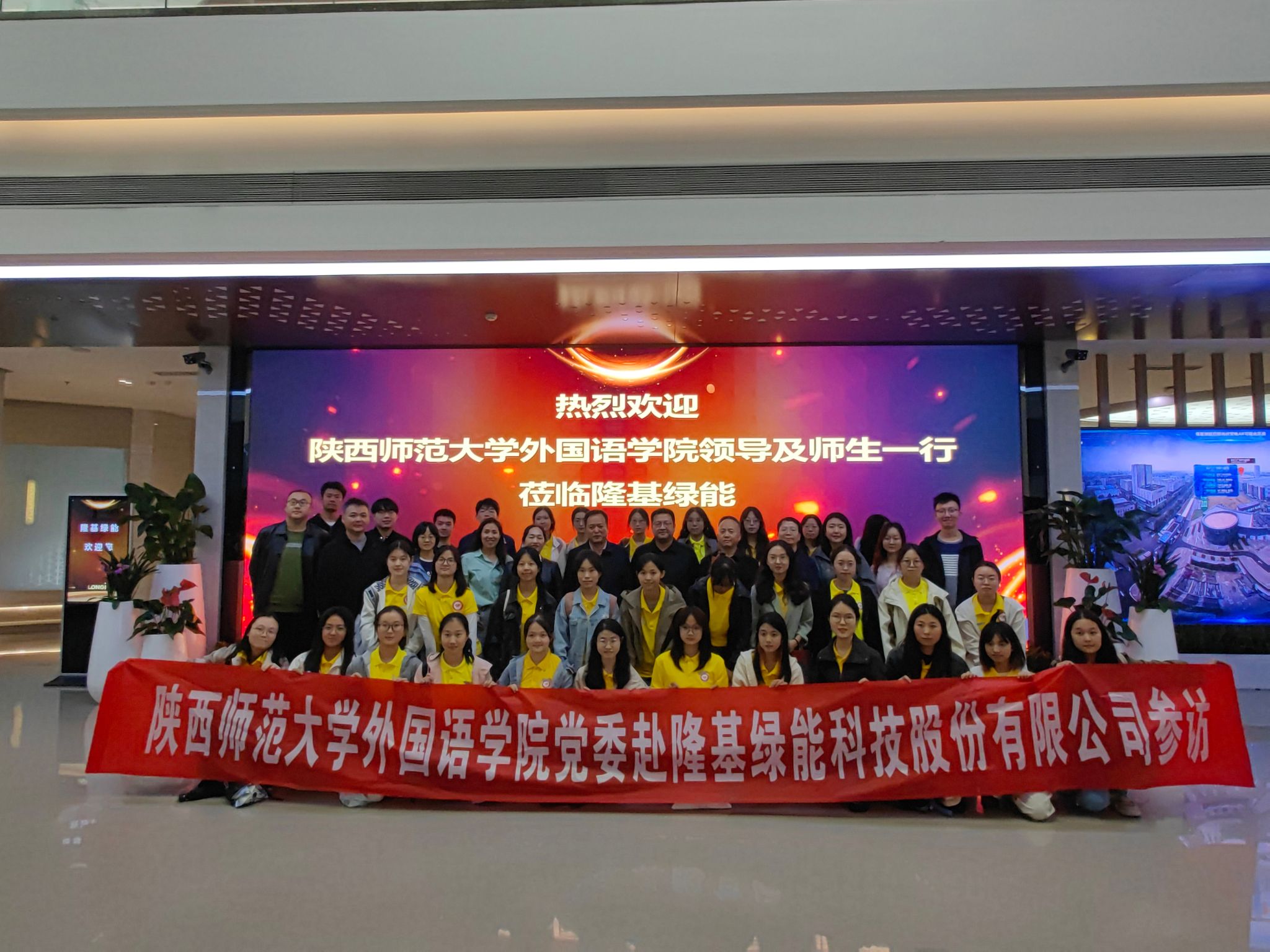 为深入贯彻学习党的二十届三中全会精神,在实践中增进对中国式现代化的深刻理解,推进校企合作交流,拓展公司员工全球胜任力及生涯规划视野,2024年10月17日下午,122cc太阳成集团外国语公司党委书记董增云带领本研40余名师生赴全球新能源500强企业——隆基绿能科技股份有限公司进行参观交流。公司党委副书记鲁燕,教师党员张志强、杨盛兰、王滢、马维华、卢永辉,公司团委书记李丹及辅导员高宇轩、邹胜男、刘阳等一同参观交流。