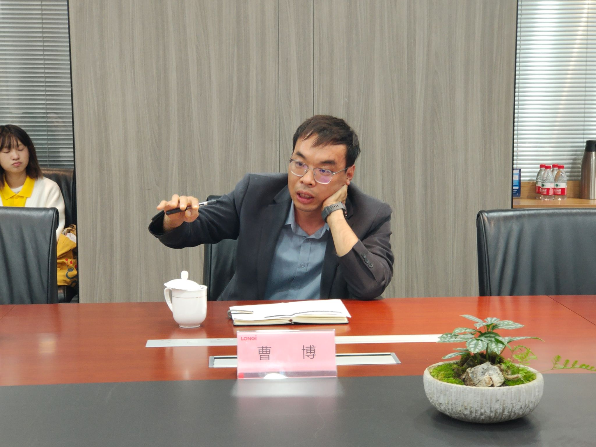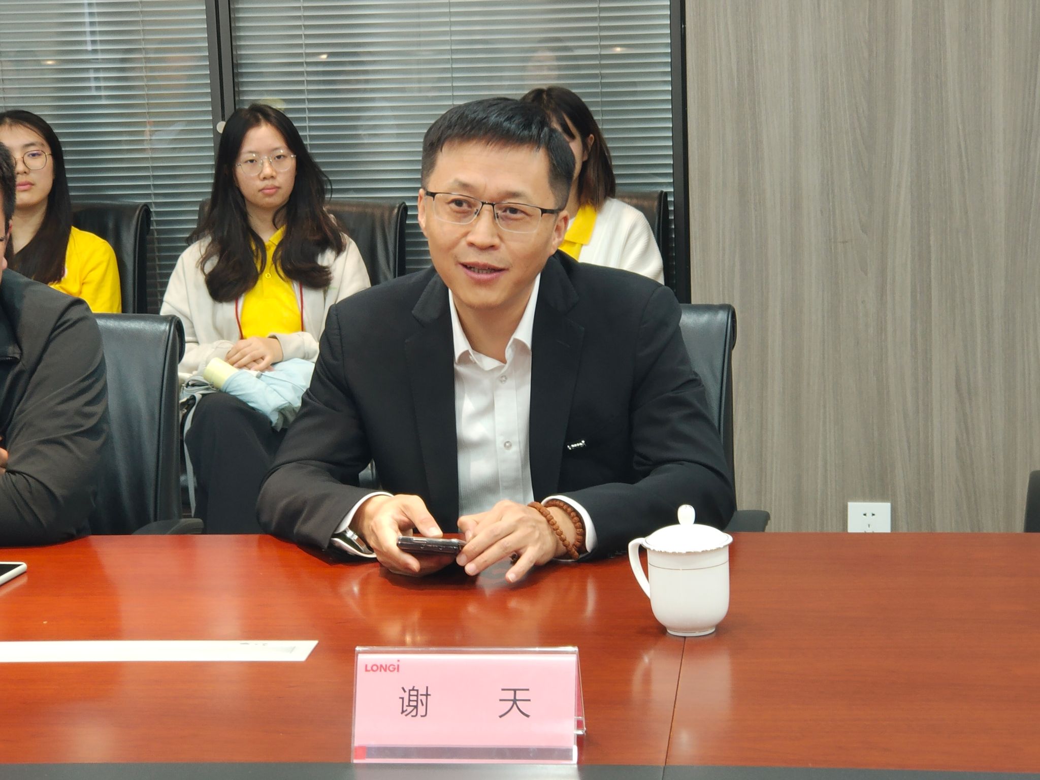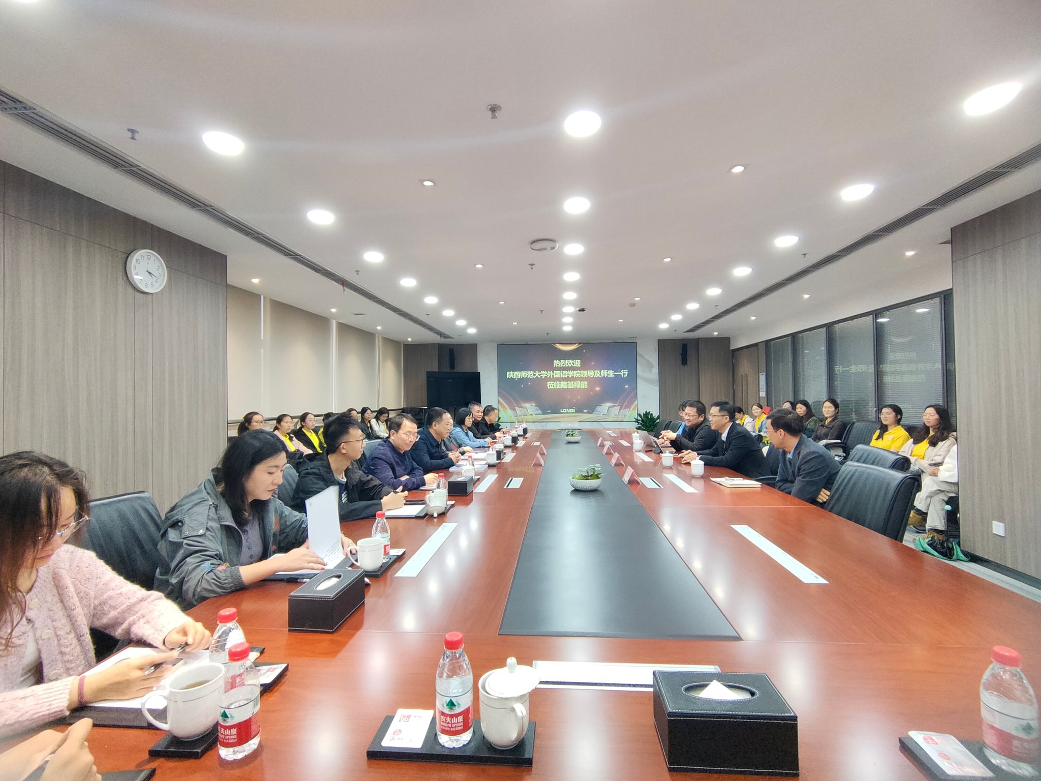 随后,师生们参加了隆基绿能科技股份有限公司与122cc太阳成集团的交流座谈。隆基绿能战略管理中心总经理谢天对122cc太阳成集团师生的到来表示欢迎,详细向大家介绍了公司战略发展情况。外国语公司党委书记董增云就公司办学特色及外语类人才培养情况进行了介绍。隆基绿能战略中心可持续发展高级经理汪子阜、招聘高级经理曹博、战略管理中心ESG经理杨雪晴分别就光伏产业的国际形势、中外贸易跨文化要求、ESG内涵与理解、海外人才需求等方面进行了交流分享,表示愿意加强校企合作,共同提升国际化人才培养质量。