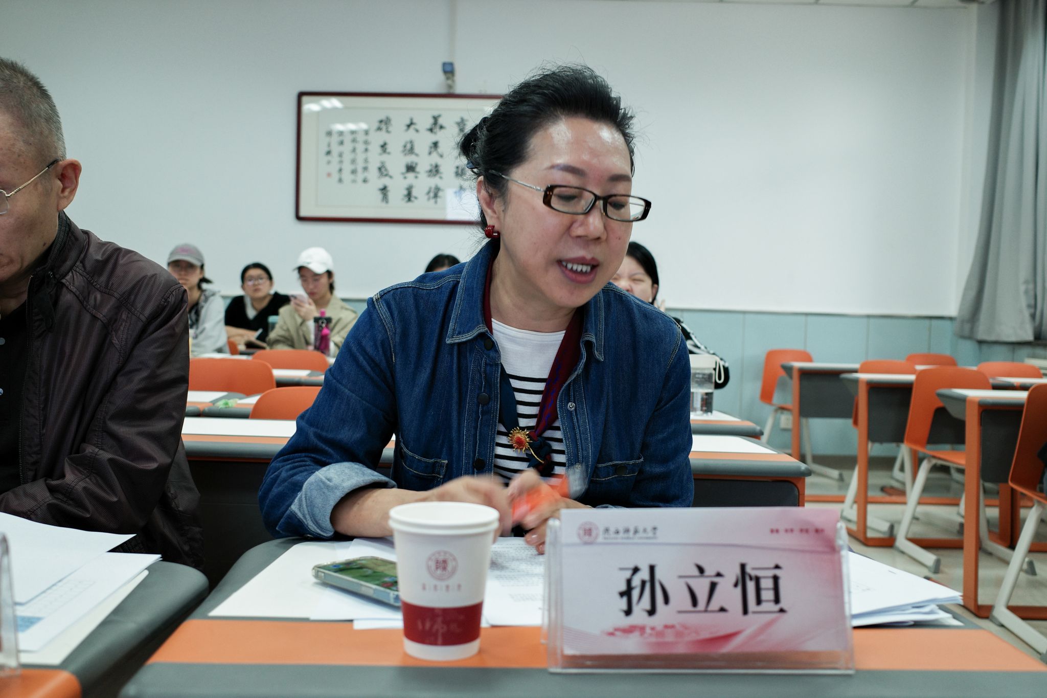 硕士研究生刘玲君、兰洋洋、林弘洋、秦艺潇、王丽蓉、任宇慧围绕语音现象、语法结构等多个方面出发,分别以“体认视角下山东招远方言‘VVP’式正反问句的认知机制研究”“甘肃平凉崆峒区回族方言中‘我’的语音变异”“陕南山阳县杨地镇下河话方言语音接触研究”“现代汉语指人类后缀的构式形态图式及其认知机制研究”“言语奢化与语言创新——以‘水灵灵的’词汇构式为例”“新兴构式‘X不了一点’语法试探分析”为主题,从文献渊源、田野调查、理性推测等多个层面进行汇报。博士研究生白雅、覃丽娇、郭红梅、袁欣宇、赵小庆以“中国英语学习者理解和产出英语共延型虚拟位移构式的习得研究”“白圩客话‘着 ʨiek24 ’的语法化研究”“近70年来新疆汉语方言端精见组齐齿呼字语音的微观演变”“中英文期刊近十年语音音系研究刊文对比分析”“山西曲沃话pf类声母研究”为题做出分享。两位点评嘉宾具体问题具体分析,对各位同学的论文提出了详细缜密的修改意见与建议。