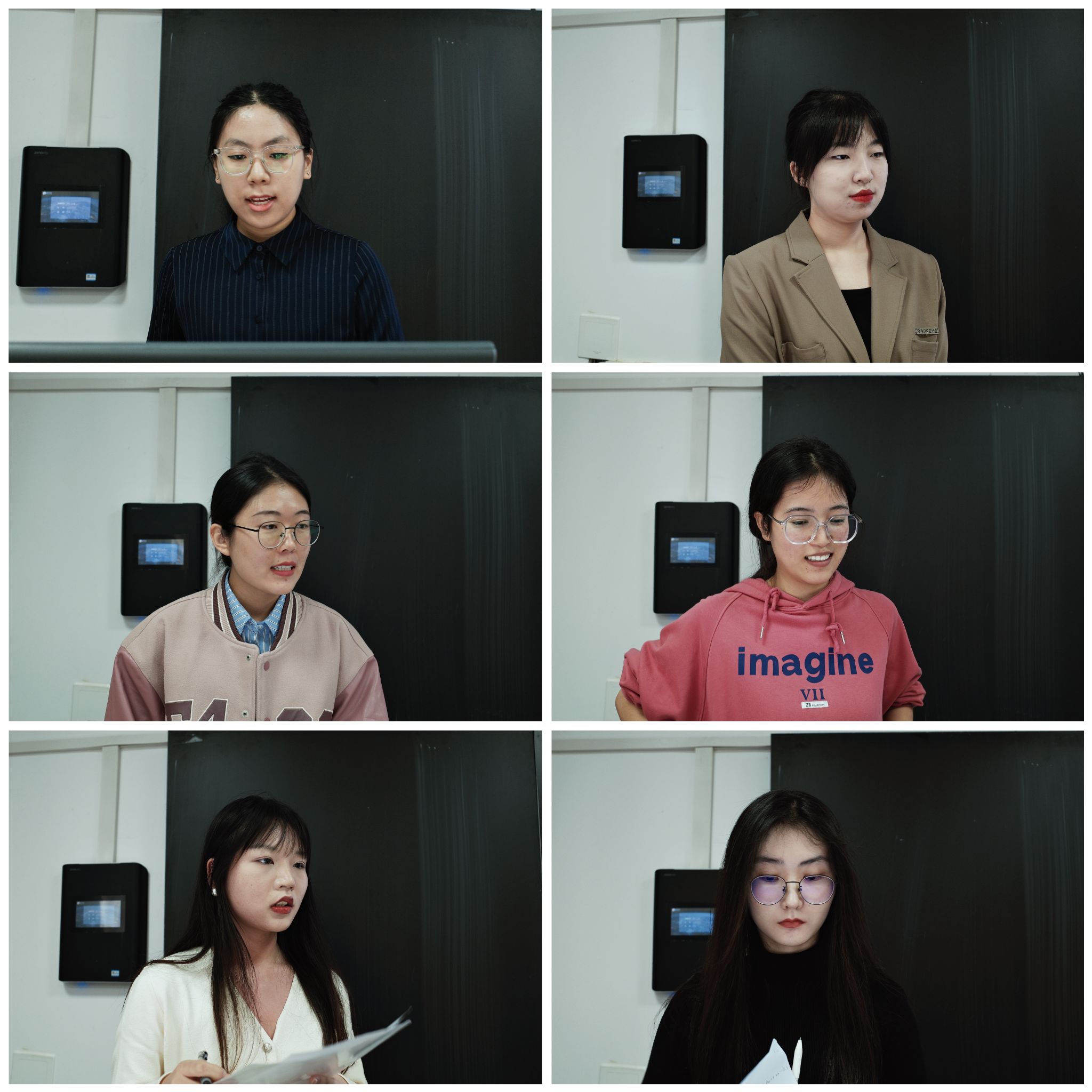 在此次论坛中,九名同学分别从九个方面对不同主题进行了汇报。本科生何诺冉、拓宇欢分别以“泰特勒翻译三原则在散文英译中的应用——以张培基所译《艰难的国运与雄健的国民》为例”和“‘性灵说’对林语堂翻译活动的影响”为题进行了汇报。硕士研究生马莎、刘丹妮和张予诺分别以“目的论视角下的《古文观止》四字词语翻译研究”“On the English Translation of Culture-loaded Words in The Youth of a Great Man—Zhu De (Chapters 1-5) from the perspective of Functional Equivalence Theory”和“意象图式视角下李清照词英译本研究”为题进行了汇报。博士研究生李文玉、丁礼明、马媛、刘岚分别以“中国特色话语多模态对外译介的‘厚译’路径研究”“林语堂《板桥家书》英译中的文化记忆建构研究”“第三空间视角下林语堂《虬髯客传》的翻译接受研究 ”“ 张申府对西方语言哲学思想的译介与会通”为题分享了自己的研究内容。两位评委老师认真聆听,在肯定选手们精彩表现的同时,还就相关研究提出问题,给予了具有针对性的宝贵建议。