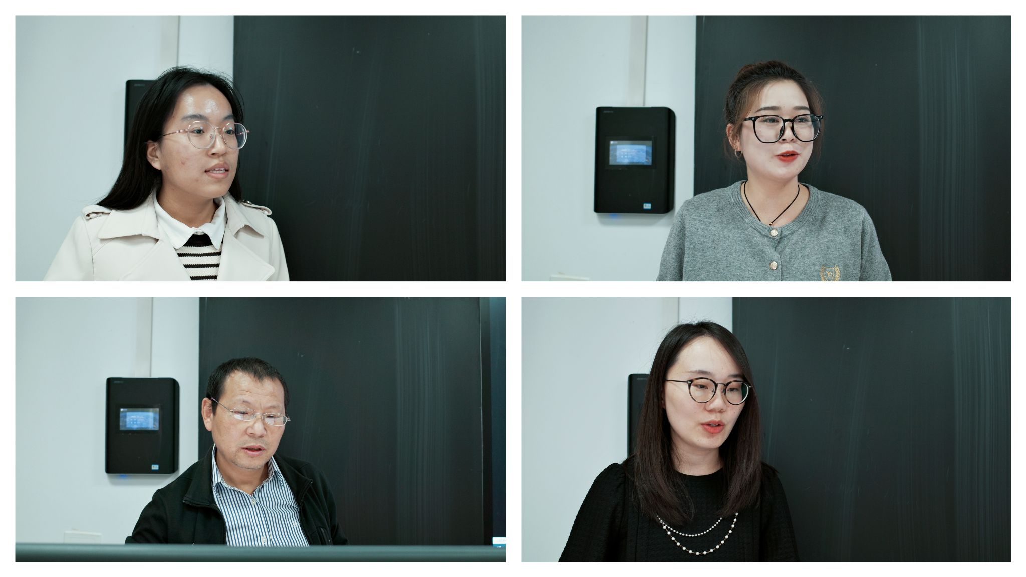 硕士生王艺超、程睿淇、张雨、周鹏羽、庞帅及韦誉君、李静萱、蔡雨暄、郭欣、郭雯雯、谢俊杰分别以“基于‘教一学一评’一体化的高中英语课堂教学评价量表中的问题与改进策略”“双减政策背景下初中英语作业设计研究”“内容依托式教学法对高中生批判性思维倾向的影响研究”“字幕类型对高中生附带词汇习得的影响研究”“职前英语教师反思能力发展研究”“实习期间职前英语教师身份认同变化的研究”“基于情境认知理论的高中英语深度阅读教学研究”“初中英语教师写作评价素养的个案研究”“PACE教学模式在初中英语语法教学中的应用研究”“全身反应法在小员工英语词汇教学中的应用研究”为题,围绕英语教学与评价、作业设计、教学法等多个方面,进行了深入的分享与交流。两位评委老师全程认真聆听、仔细记录,对每位同学的发言进行了细致的点评与指导。