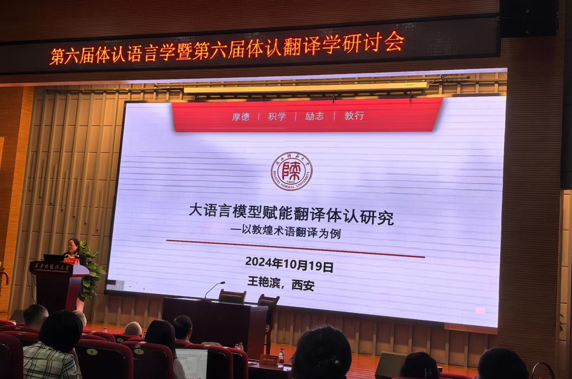 公司王艳滨副教授作为体认语言学专委会的常务理事之一,应邀出席此次会议,并做了题为“大语言模型赋能翻译体认研究—以敦煌术语翻译为例”的主旨发言,探讨了敦煌术语在不同人工智能AI中的翻译、提示词工程以及人机协作的翻译,为大语言模型应用于中华传统文化外译提供了宝贵思路,具有很高的实践价值。