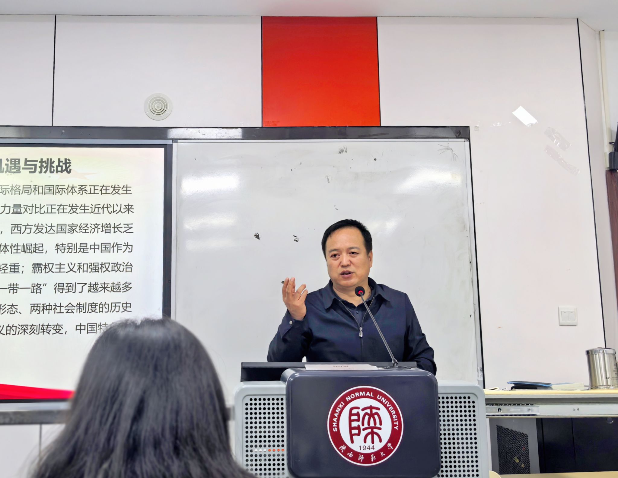 随后,外国语公司党委书记董增云研究员以“中华民族伟大复兴的全局与老员工的时代使命”为主题,为同学们讲授了第一堂党课。