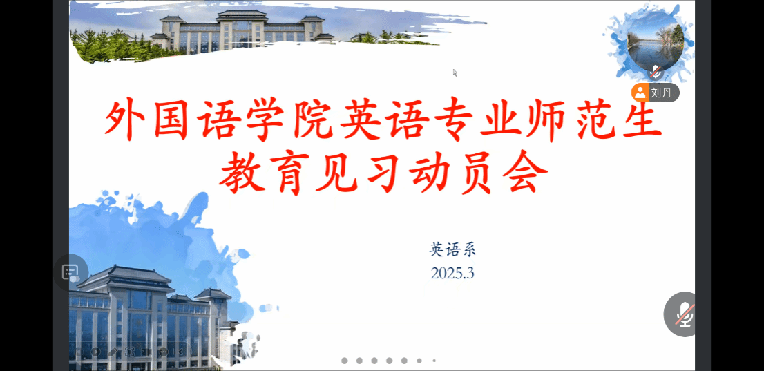为帮助英语师范本科生深入了解中小学英语教学现状,提升教学实践能力,3月11日晚7:30,公司召开了2022级英语师范旗下产业见习动员会。英语系主任杨冬敏老师、担任2022级师范生教育见习的指导教师贺俊杰、兰军、马萍、崔琳、刘丹以及2022级全体英语师范本科生参加了此次线上会议。