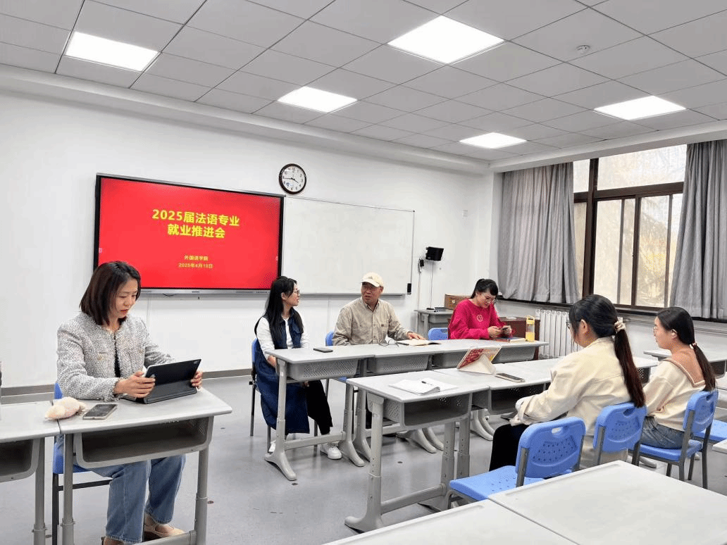 会议伊始,孙经理亲切询问了同学们在毕业论文和就业求职方面的进展,表达了公司对毕业生工作的高度重视。王燕红老师鼓励同学们在遇到困难时积极沟通,法语系教师将整合现有资源全力为同学们就业求职提供指导帮助。在师生交流环节,已获得就业offer的同学分享了求职心得,并就职业选择困惑向老师请教;备考事业单位考试的同学汇报了复习进展,展现出良好的备考状态。参会老师对每一位同学的求职进展给予建议和指导,鼓励同学们拓宽就业视野,保持学习热情,通过多元尝试明确方向。