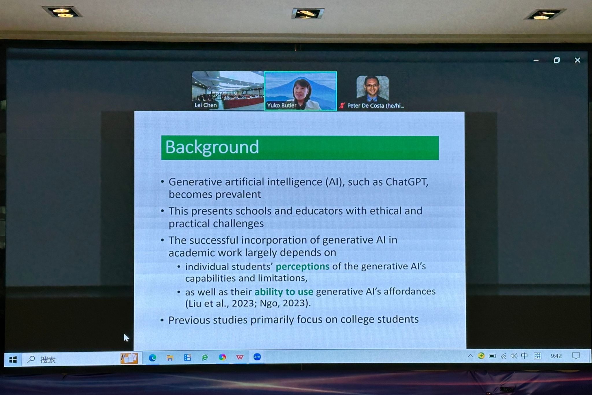 英国曼彻斯特大学赵欣博士以Supporting the Development of English Academic Writing: An Inclusive and Ethical Perspective on the Use of Generative AI in Higher Education为题进行汇报,为生成性人工智能在高等教育中的合乎伦理和包容性使用提供实践建议。