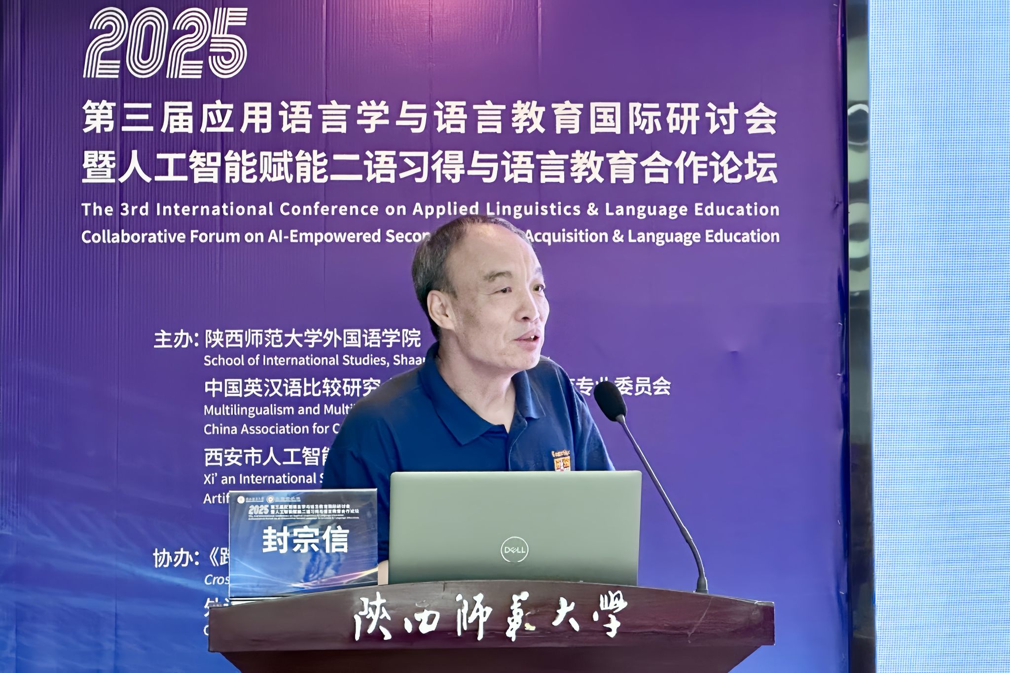 清华大学封宗信教授以Metalingual and Metalinguistic Competences in the Learner: Issues in Foreign Language Education in the Multisemiotic and Multimodal Age为题进行报告,讨论了元语言与元语言能力在语言学习过程中的地位。