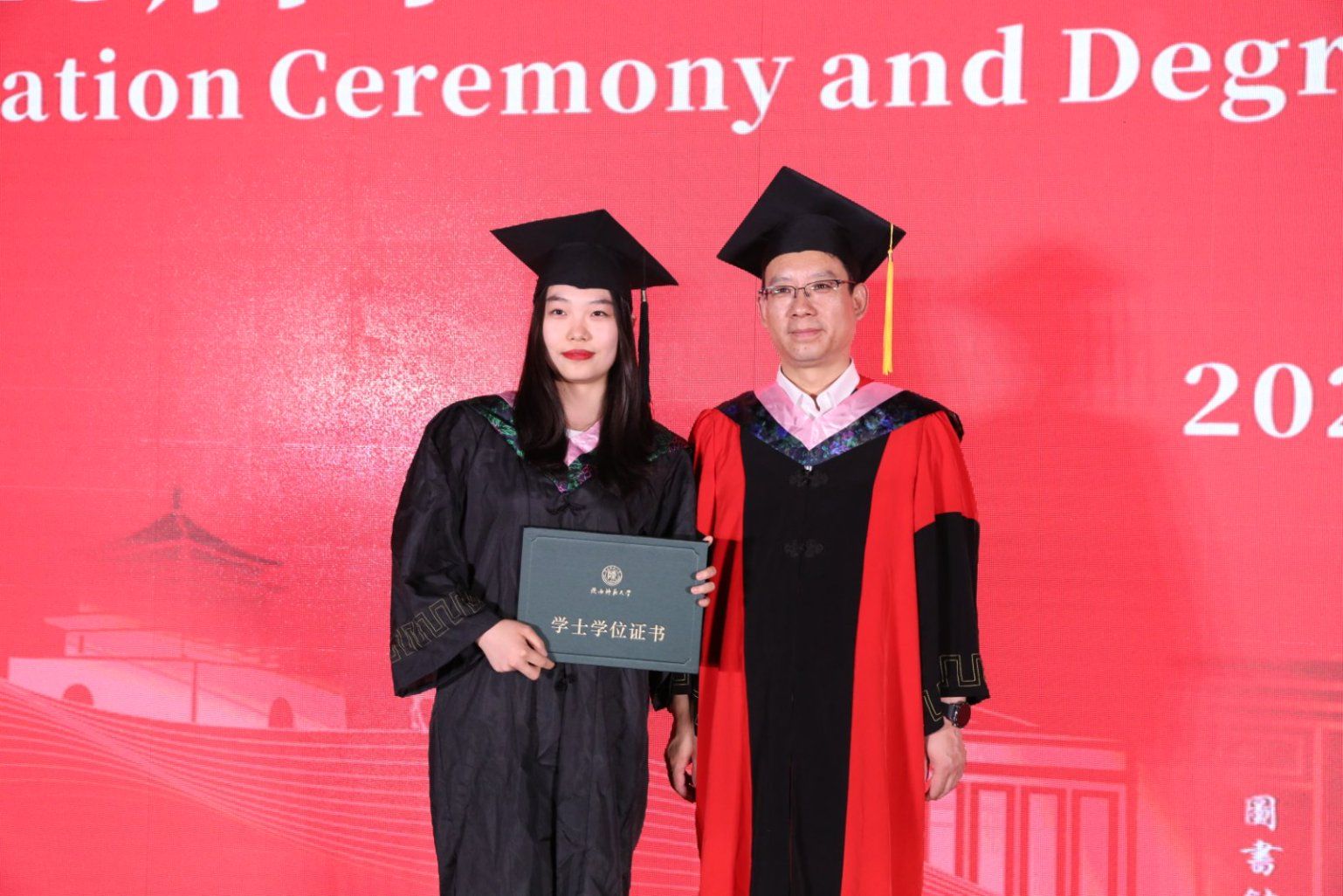 毕业典礼结束后,2025届员工学位授予仪式正式开始。公司学位委员会主席刘全国教授宣读《关于对2025年上半年学位获得者授予学位的决定》,并与公司学位委员会魏军梅教授依次为同学们颁授学位、拨穗并合影留念。