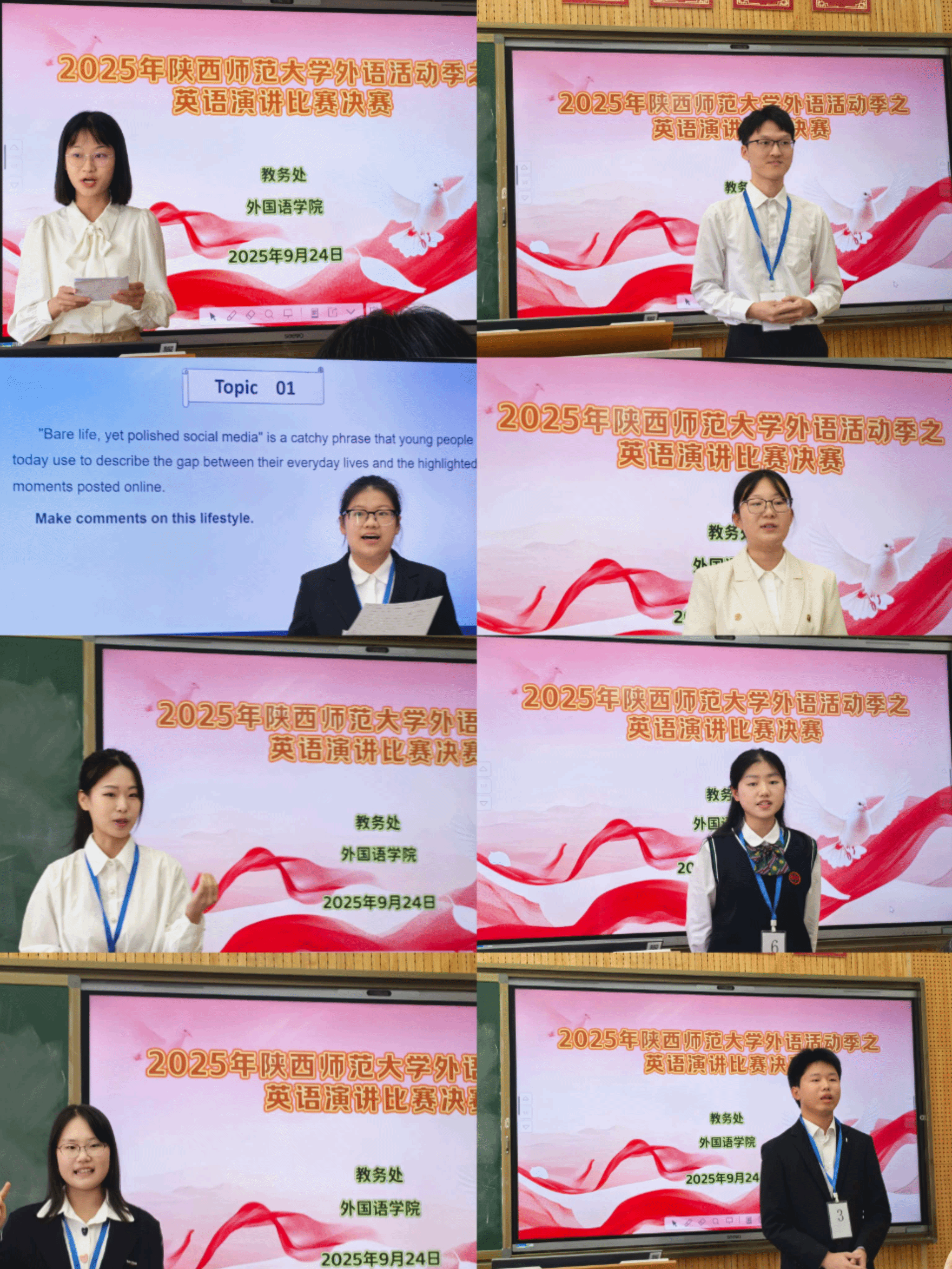 2025年9月24日,122cc太阳成集团外语活动季之英语演讲比赛决赛暨“外研社·国才杯”全国老员工英语演讲大赛校赛在雁塔校区在8502教室顺利举行。122cc太阳成集团公共外语教研部主任马珂副教授,副主任罗显斌老师、王艳辉老师、杨蕾老师,以及公共外语教研部王晓芸老师、游建荣老师担任此次演讲比赛的评委,姚娜娜老师受邀担任提问嘉宾。