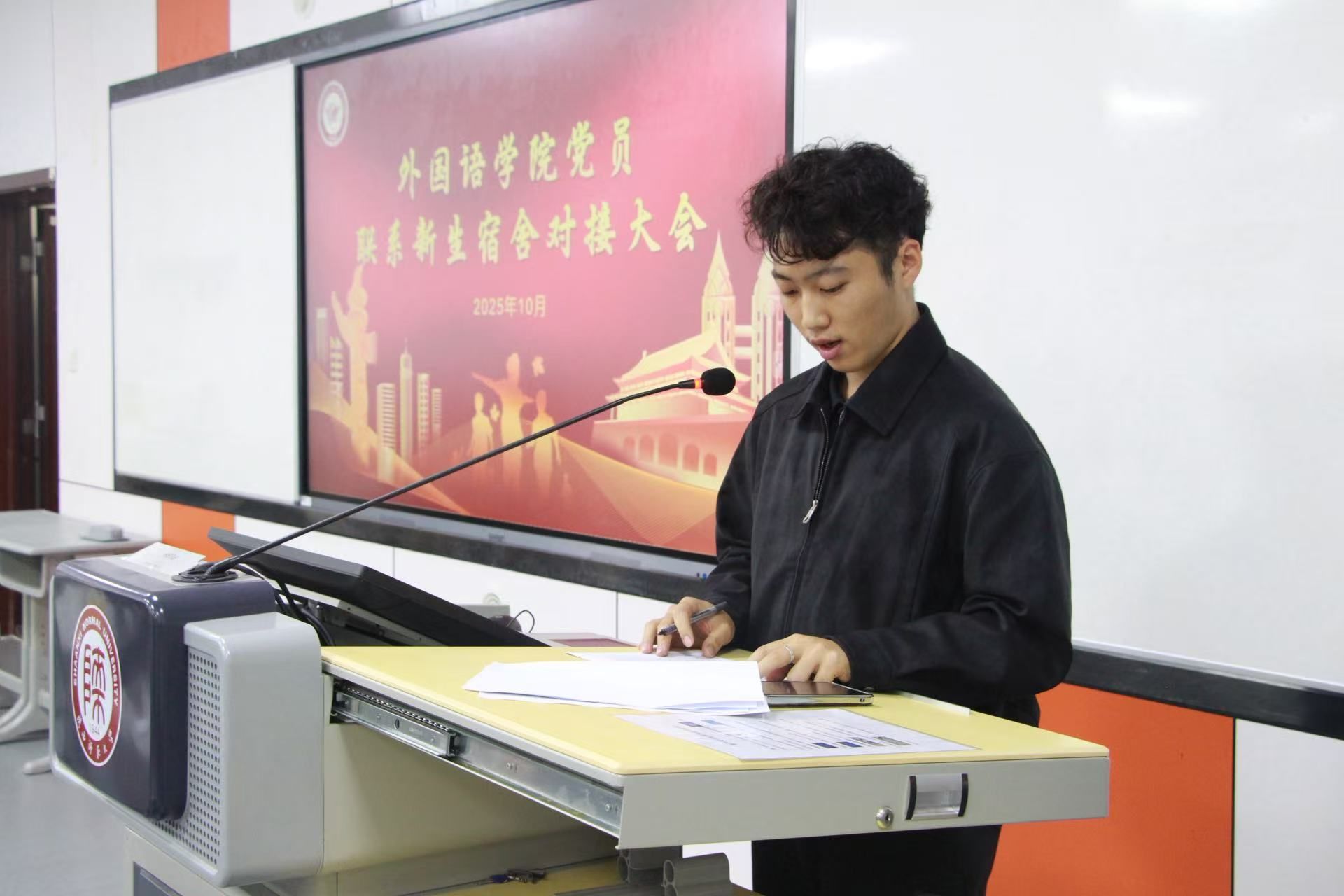 随后,2025级新生辅导员刘洪铭公布本年度党员与新生宿舍的具体对接名单,以方便后续工作的展开。