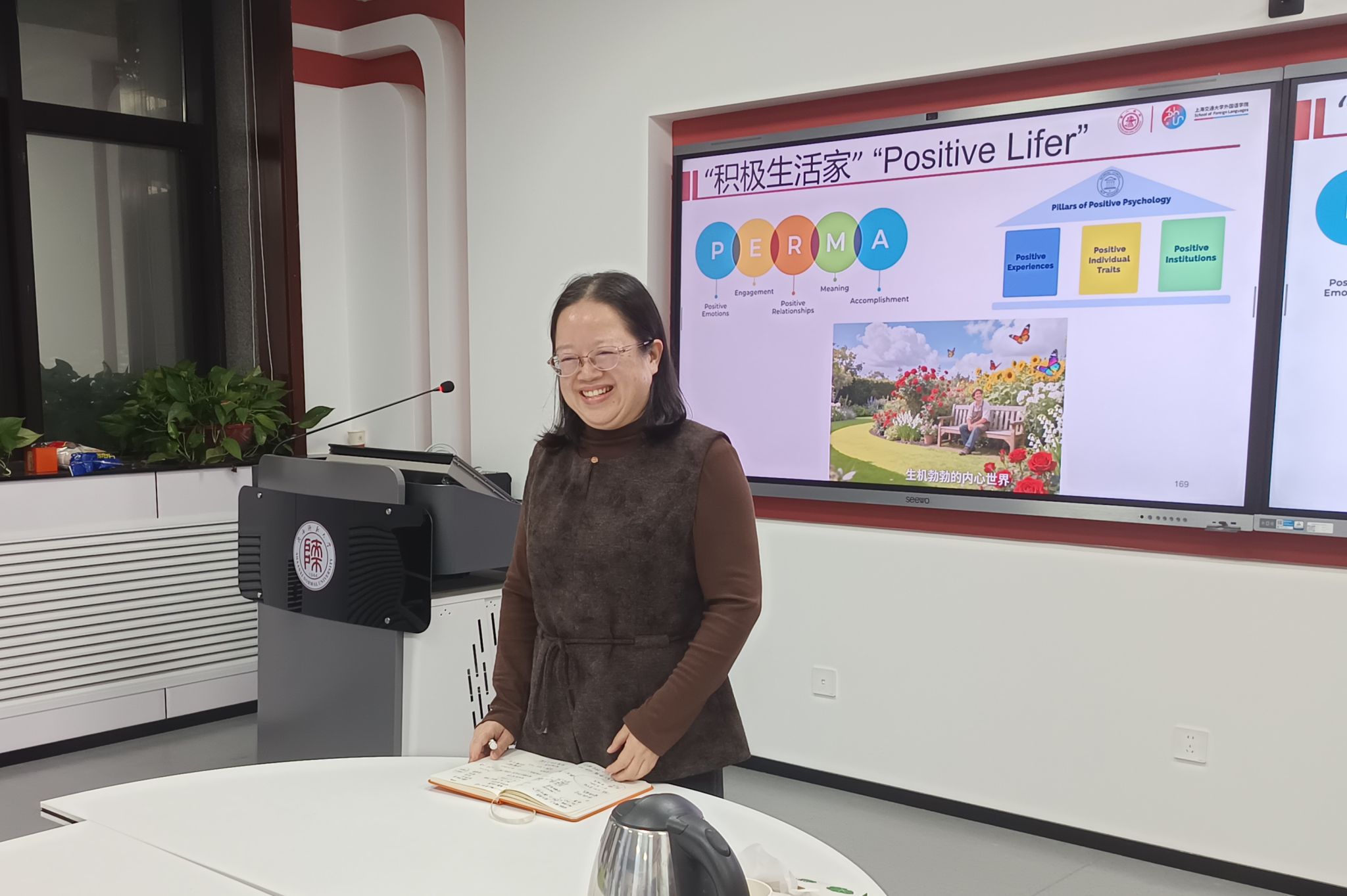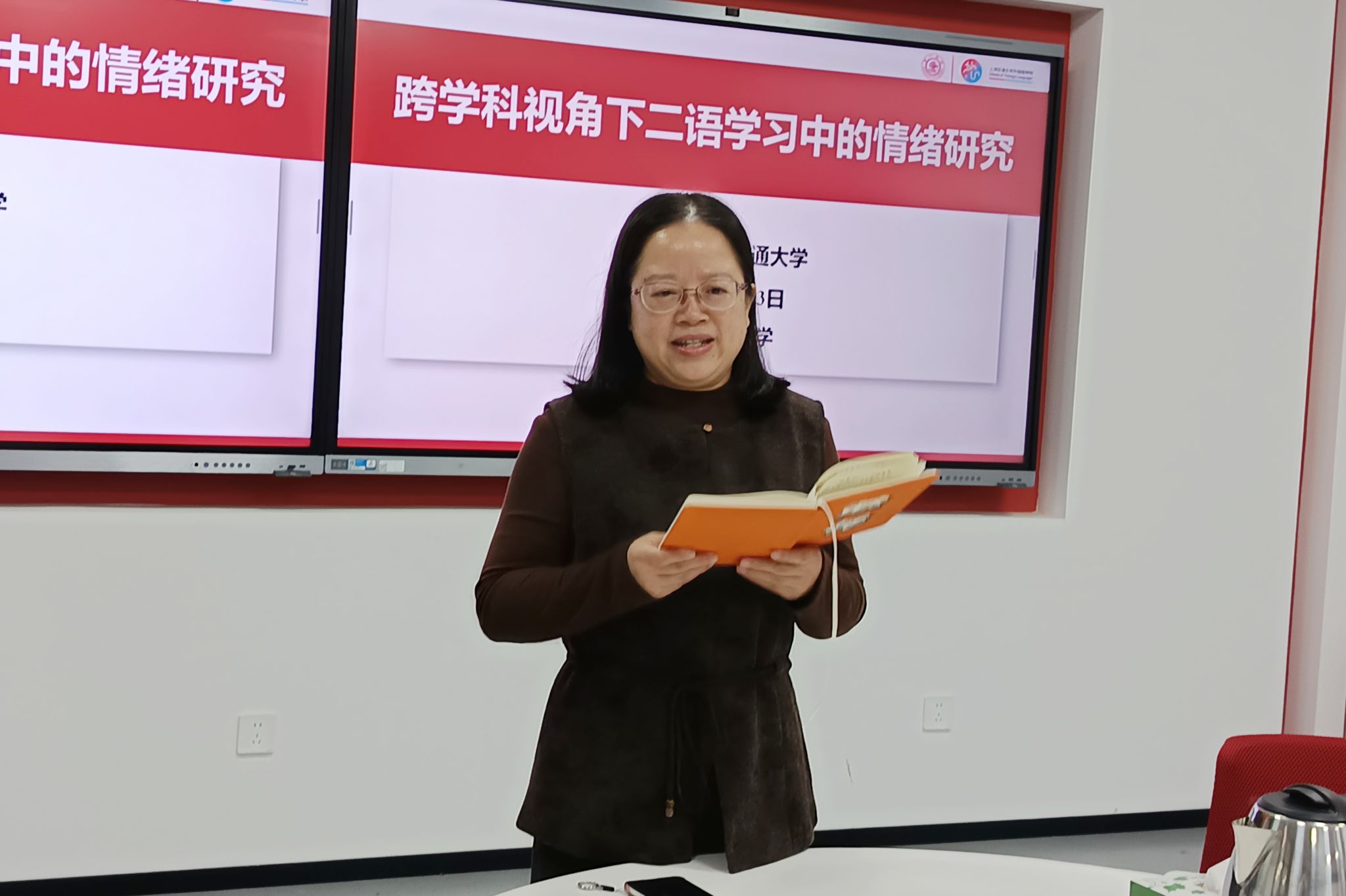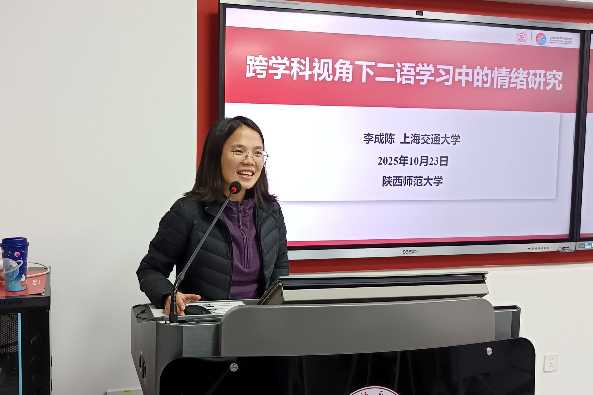 王艳滨副教授代表公司对李成陈教授的莅临表示热烈欢迎,全面介绍了李教授在二语习得与积极心理学交叉领域的学术积淀。她指出,二语学习中的情绪研究是语言教育领域的前沿方向,其跨学科特性为学术创新提供了丰富空间,希望师生能通过此次讲座,深入理解情绪与语言学习的内在关联,为后续研究与教学实践积累新思路。
