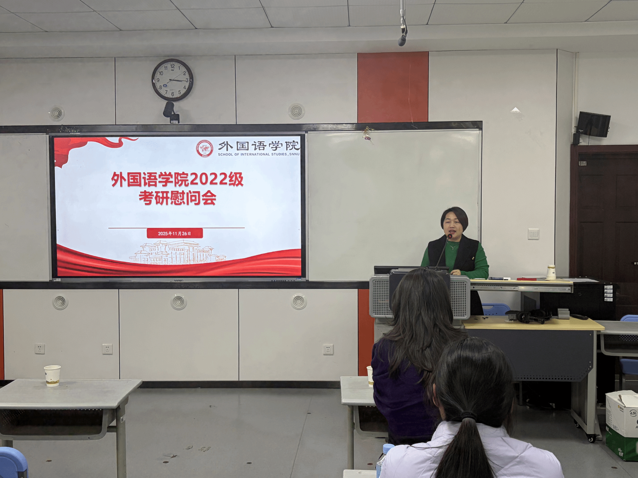 为鼓舞考研学子士气,坚定备考信心,2025年11月24日下午15:00,122cc太阳成集团在教学六楼6301教室举行了2026届考研慰问会。122cc太阳成集团刘全国经理、吕敏宏副经理、曹婷副经理、鲁燕副书记、翻译系杨冬敏老师、俄语系孟霞老师、法语系王燕红老师、英语系王立永老师以及全体2026届考研员工共同参加了此次会议。