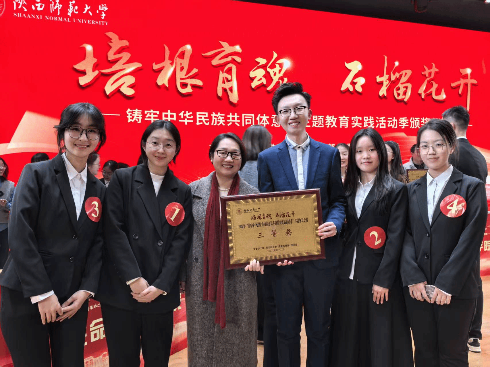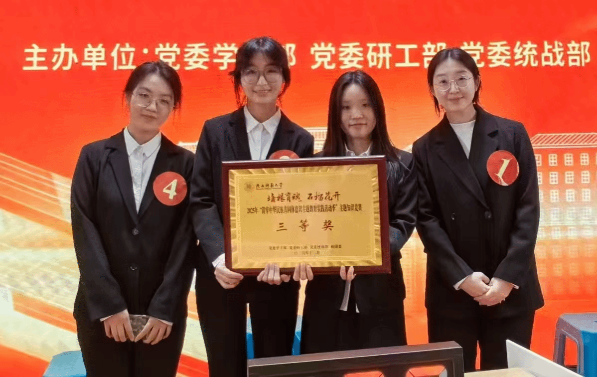 12月17日晚,公司“2025年铸牢中华民族共同体意识主题教育实践活动季主题知识竞赛”在长安校区新勇员工活动中心员工剧场圆满落幕。公司2024级金琦洁、税雪婷、杜奕柯、李琳玉四位选手在高宇轩老师的指导下代表公司参赛。团队历经初赛、复赛、决赛的层层角逐,凭借扎实的知识储备与默契协作,一路过关斩将,在众多参赛队伍中脱颖而出,荣获三等奖,展现出外院学子的责任担当与青春风采。