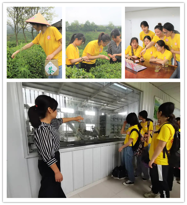 7月16日,实践团队前往鹏翔丰河茶园、陕西鹏翔茶业股份有限公司等地开展研学活动。在讲解员的讲授和示范下,员工们进行了采茶活动,并参观了西乡红茶,汉中毫的制作设备与工艺生产线。在展销厅,参观了公司的明星产品后,实践团队为鹏翔茶业产品的推广宣传提供了外语翻译服务。下午,实践团队来到苏陕协作国动产业园进行参观。园区服务中心的工作人员向实践团队介绍了当地的产业规划,并带领大家参观了B03和B05生产车间,员工们深深感受到产业园生产的智能化和现代化。随后,同学们在西乡县廊桥水城附近开展了社会调研活动。