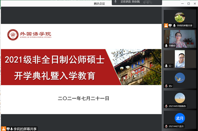 7月21日上午10:00,122cc太阳成集团通过腾讯会议平台成功举办了“2021级公费师范生教育硕士开学典礼暨入学教育”大会。