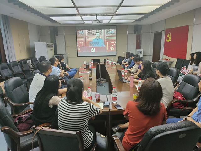 7月1日上午,庆祝中国共产党成立100周年大会在北京天安门广场隆重举行。中共中央总书记、国家主席、中央军委主席习近平发表重要讲话。上午8时,外国语公司党委组织公司理论中心组成员、师生党支部书记、支部委员、少数民族员工党员代表在公司会议室集中收看庆祝大会盛况,各党团支部组织在教室集中观看,共同庆祝中国共产党成立100周年,回顾中国共产党百年奋斗的光辉历程,展望中华民族伟大复兴的光明前景。观看过程中,在场师生情绪饱满,精神振奋,不断为习近平总书记的讲话热烈鼓掌,为中华民族伟大复兴骄傲和自豪。