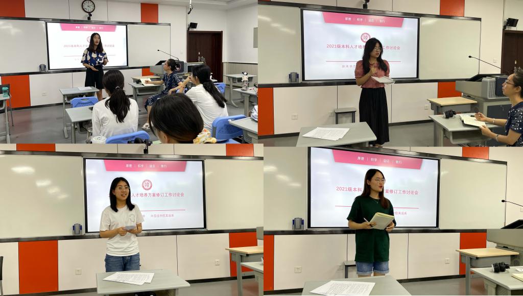 在教师讨论阶段,教学委员会委员提出了针对培养方案修改的总体建议。随后,王艳滨、刘庆松等多位教师代表分别围绕课程、教材以及教学的内容与形式方面的问题进行了讨论,例如个别必修科目教材阅读材料少,不能满足员工需求;一些课程内容有相似性,可以合并删减课程等等;另有教师代表就职前教师必备的优秀的语言基本功、工整的书写习惯、熟练的信息技术操作、科学的教学设计能力、良好的沟通与交流能力、基本的教学管理能力以及优良的个性品质等提出具体问题和方案。会后,全体参会教师提交了培养方案整改建议和调查问卷。