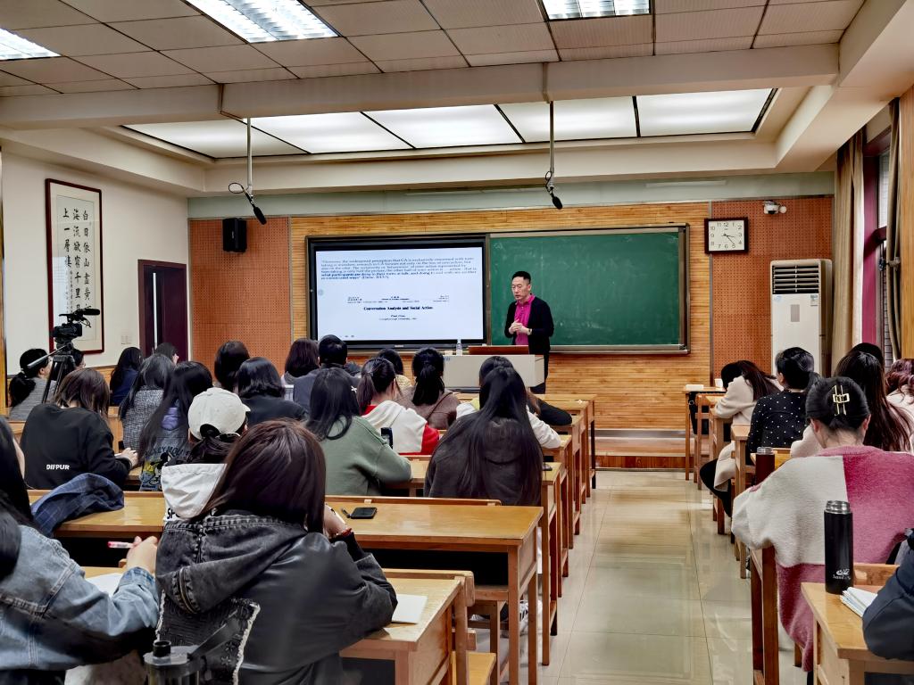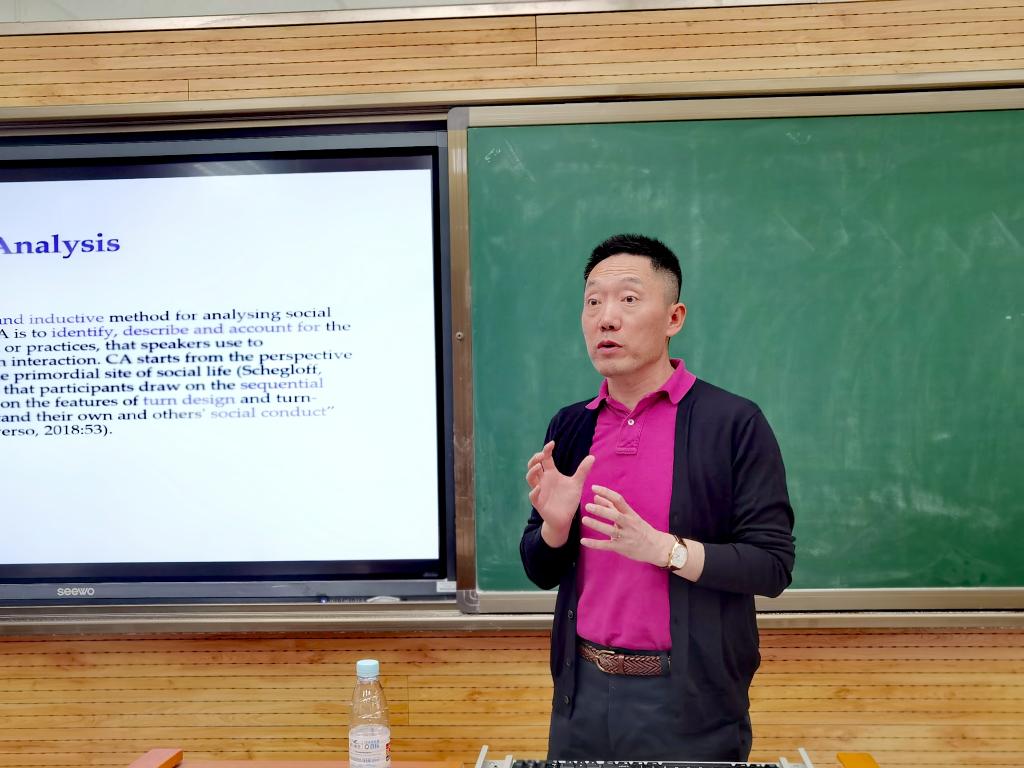 讲座伊始,张韧教授向大家隆重介绍了于国栋教授及其科研成就,并表达了自己对本次讲座的浓厚兴趣,期待在于教授的带领下,和大家一起探索会话分析的奥妙。