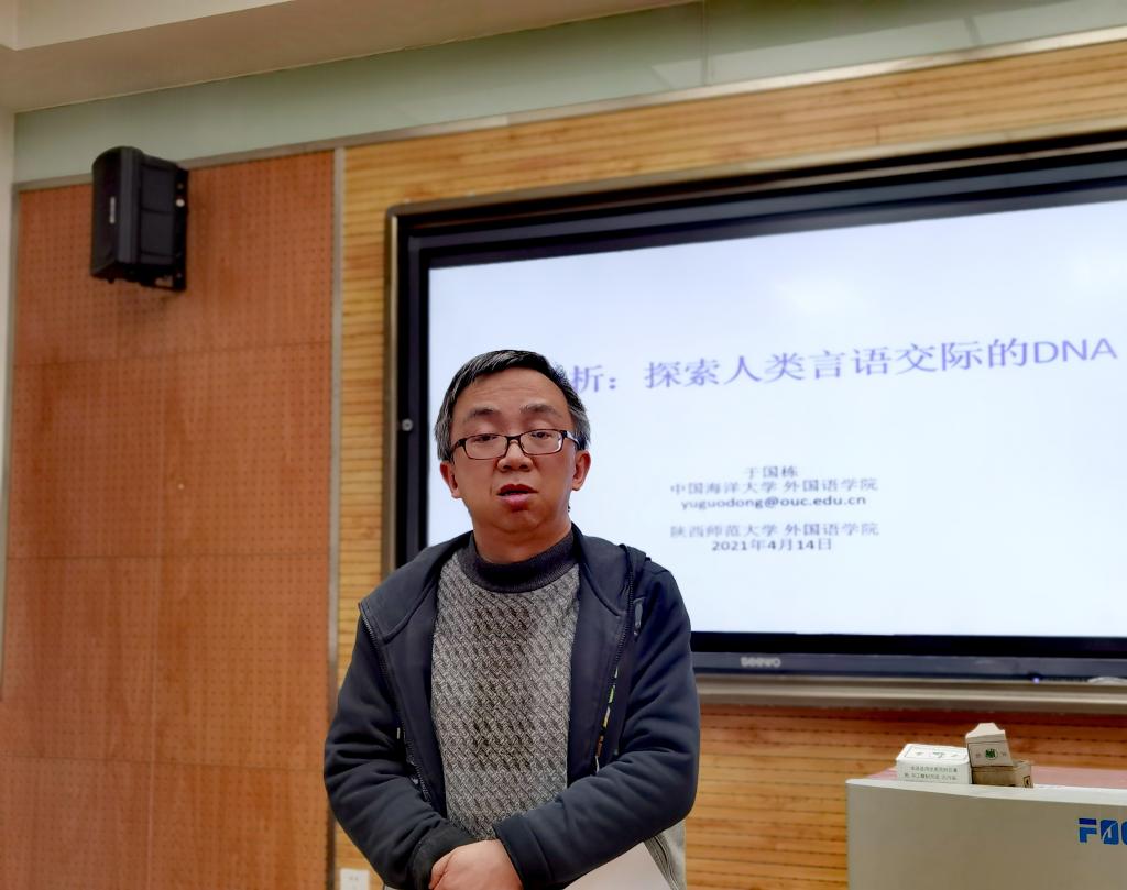 2021年4月14日下午,122cc太阳成集团第一百三十二场著名学者系列讲座《会话分析:探索人类言语交际的DNA》在雁塔校区教学五楼5309教室成功举办。中国海洋大学于国栋教授受邀担任主讲人,公司122cc太阳成集团外国语言文学博士生导师、语言与认知研究所所长张韧教授担任主持人,122cc太阳成集团部分师生参与并认真聆听了此次讲座。