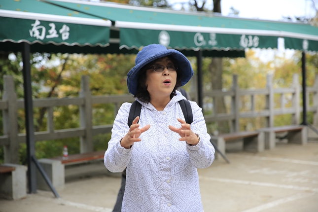 老师们组成三个登山小队,大家分别创建自己的队名、队歌和口号,一路互相帮助,欢歌笑语,用一首首正能量的歌曲自我激励,山路虽然陡峭,但大家基本都登到了山顶。在山顶欣赏秋日美景,老师们一同唱起《我和我的祖国》,引起了众多游客的共鸣,大家高声歌唱,歌声在幽幽山谷飘荡。