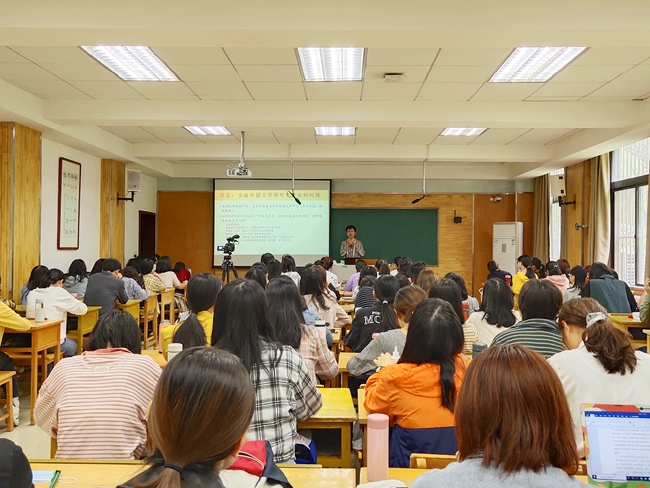 针对研究生的讲座中,代显梅教授首先结合自身求学之路和参会经历分析了当前研究生学习中存在的一些研究问题和困惑,并引用霍桑、亨利·詹姆斯等经典作家的事例建议研究生在科研过程中潜心阅读、沉淀自我,有独立思维和见解。随后,代教授从作者素质、读者素质、阅读内容、阅读技巧四个方面阐释文学研究的目的和方法,强调在阅读过程中回归经典、关注细节、培养心智的重要性。接下来,代教授以社会心理学家埃里希·弗洛姆的《存在的艺术》为导言,以英美19-20世纪的经典作家为范例,通过对西方文论史上有关文学家、文学作品和读者资质的回顾,引导在座师生在文学研究中关注全人类,不局限于单一民族或性别。最后,代教授以“修行、觉悟、传承”六字作为结语,希望研究生能够将广泛阅读和有辨别力的阅读相结合,夯实学术基础,传承人文情怀,以兴趣激发灵感,用灵感书写思想。代教授的讲座生动激昂,富有极强的感染力,增强了与会老师和员工对文学研究的热爱之情。