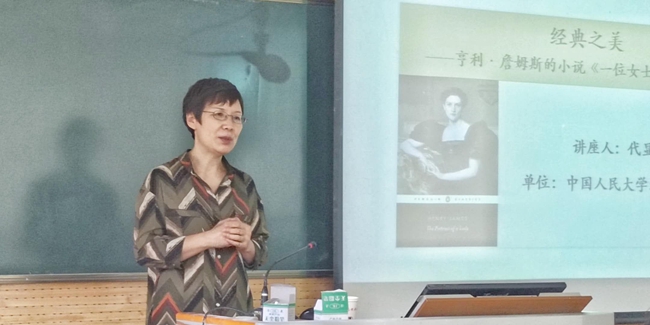针对本科生的讲座中,代显梅教授首先引用多位文学大师的经典评论,指出了在当今国际文化交往不断发展的时代,经典文学作品对于培养人的认知能力和情感能力的重要作用。随后,她从洞察力、包容性以及审美价值三个方面告诉大家何为真正经典的文学作品。接下来,代教授向大家讲述了阅读文学经典的具体方法,并以《一位女士的画像》为例,从结构之美、语言之美、修辞之美等方面详尽阐述了蕴含在这部作品中的经典之美。最后,代教授强调读者应在对经典的细读和反思中矫正自己的认知偏差,提高自己的判断能力,从而发现和培养最好的自我,找到生活和学习的正确目标。(文字:赵小娜张倩图片:胡雯苑刘添钰)