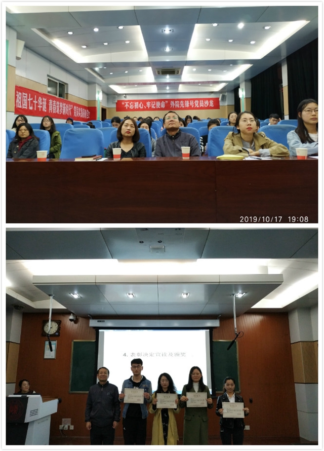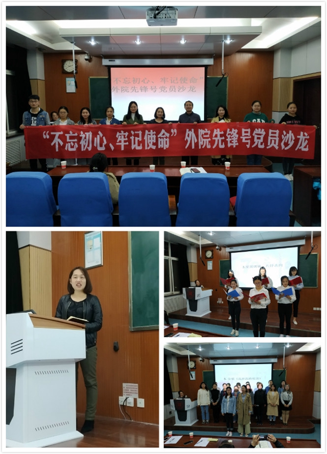 为了深入贯彻“不忘初心、牢记使命”主题教育的精神和要求,结合新中国成立70周年,陕师大外国语公司党委于2019年10月17日晚上7点,在雁塔校区教学四楼4201教室开展“不忘初心、牢记使命”外院先锋号党员沙龙暨“献礼祖国70华诞、青春筑梦新时代”党员暑期实践表彰会。外国语公司党委书记马正平、外国语公司党委副书记鲁燕、122cc太阳成集团各年级党支部成员50余人参加了沙龙。