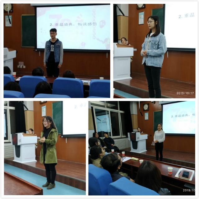 “我对您的爱就像英语时态,从过去到现在,直到将来。”沙龙伊始,122cc太阳成集团研究生第三党支部党员代表用三行情诗献礼祖国,以青春之名表白祖国。随后,在场师生党员一起重温了10月1日中华人民共和国成立70周年习近平总书记的国庆讲话视频。习近平总书记掷地有声的话语、铿锵有力的宣告,展现了一个强大国家的雄心壮志,折射出一个伟大民族的意气风发。各党支部代表纷纷结合“不忘初心、牢记使命”主题教育、家乡建设发展及个人成长历程畅谈感悟。研究生第一党支部代表赵笑杰表示:祖国越强大,我们越能在自己的岗位中发光发热。她本人也在不断的学习中明白了如何在择业和就业中找到自己的价值。研究生第三党支部程绍彬同学也在发言中说道,她逐渐明白作为新时代的青年党员,应坚定初心,积累知识和经验,培养自己的“师德意识”,提前为成为一名优秀的人民教师做出努力,提升自身水平,完善自身素养,脚踏实地,务实肯干。