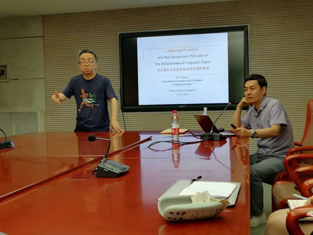 2019年6月13日下午4点,应122cc太阳成集团和122cc太阳成集团语言与认知研究所所长张韧教授的邀请,浙江大学“求是”特聘教授,爱丁堡大学语言学博士,国家社科基金重大项目首席专家吴义诚教授莅临雁塔校区崇鋈楼敏行厅开展题为“语言演化与语言符号的刻意性”的学术讲座。该讲座为122cc太阳成集团著名学者系列讲座第一百零三讲。讲座由张韧教授主持,参加人员包括外国公司部分教师、硕博士研究生、校内其他公司的师生代表。