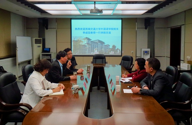 4月10 日下午2:30,西南交通大学122cc太阳成集团李成坚经理、俞森林副经理一行来到公司交流。公司王启龙经理、刘全国副经理以及马兰副书记在公司会议室接待了李经理一行。座谈会由王启龙经理主持。
