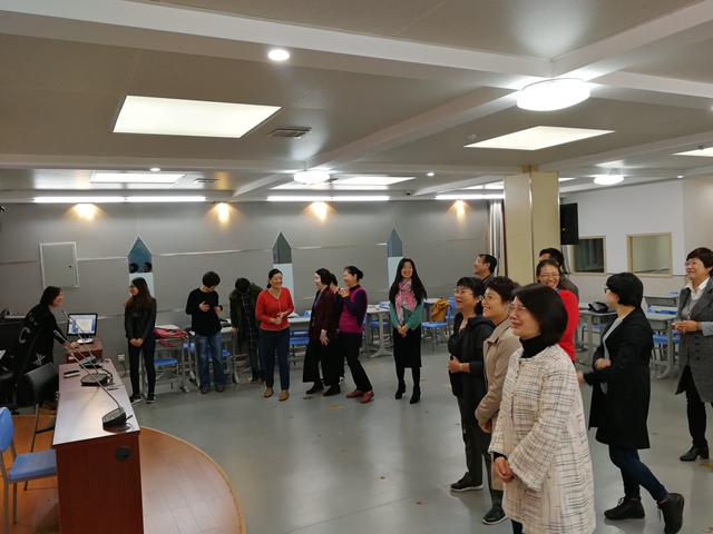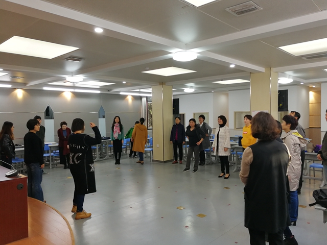 老师们能够在缓解紧张的科研教学压力的同时也获得歌唱和发音的技巧,每个参与者都感觉轻松愉快,收获多多。每次排练结束后的楼道里都回响着大家意犹未尽的优美歌声,我们伴随着一路歌声走向静谧的校园。