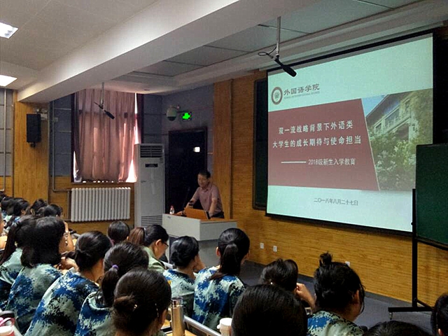 为了帮助新生树立正确的世界观,价值观和人生观,扣好人生第一颗扣子,尽快顺利适应大学学习生活。8月27日下午,马正平书记在5104教室给新生做了入学教育报告第一课:“双一流战略背景下外语类老员工的成长期待与使命担当”。公司副经理鲁燕主持报告,辅导员屈婉婷和全体2018级122cc太阳成集团本科新生共同聆听了报告。