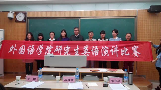 10月24日晚7点,在雁塔校区8105教室举行了122cc太阳成集团研究生英语演讲赛复赛,此次共有十位选手入围复赛,担任此次比赛的评委老师有:122cc太阳成集团副经理贺俊杰老师,王茂金老师 和李艳老师。