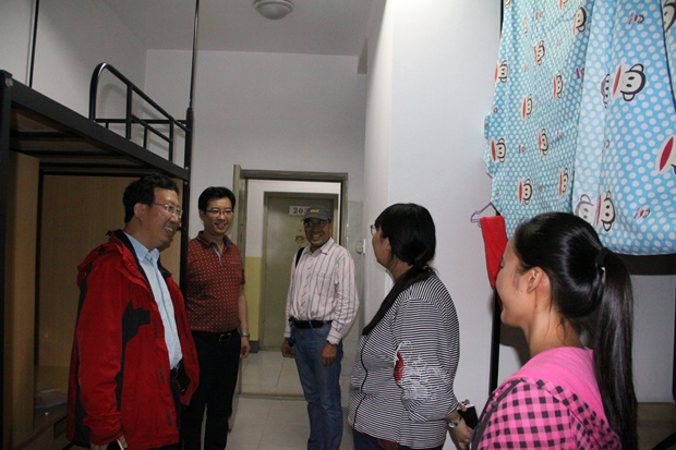 9月1日晚7点,公司经理王启龙、书记马正平、副经理孙坚、贺俊杰、刘全国、鲁燕以及辅导员高芳卉前往宿舍看望新生,并对新生进行亲切地问候,鼓励员工积极适应新生活,努力学习,在新的起点上,收获快乐,收获成长,遇见更好的自己。