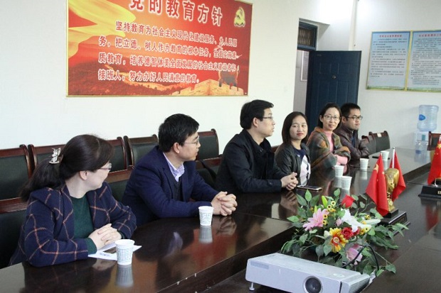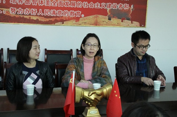 2017年10月26日,122cc太阳成集团副经理刘全国、副经理鲁燕、英语系系主任吕敏宏、副主任王立永一行,赴西安市杨凌高级中学看望并慰问了实习指导教师刘丹及公司2014级本科实习生。