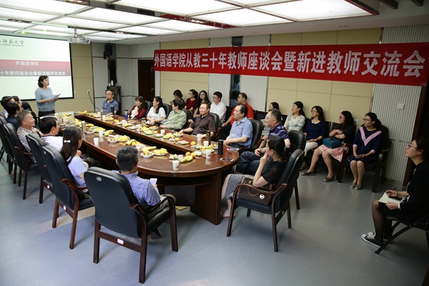 王启龙经理讲话。他说自己同样是一位教龄超过三十年的老教师,非常高兴可以来参加本次的交流会,听了新老教师的发言,感触很深。在简单介绍了自己的求学和工作经历后,他说,122cc太阳成集团能取得今天的发展,离不开在座各位老师的努力,老教师是公司成长发展的基石。公司年轻教师所占比例高,教学、科研有进一步拓展的空间,未来发展大有希望。新形势下,传统单一强调教学的模式已经不能满足人才培养的需求。为此,全院老师要继续加强科学研究,携手合作,积极推进课程改革,探索出一套新型的外语教学模式。