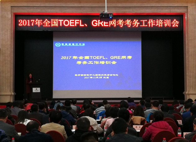 由教育部考试中心主办的“2017年全国托福、GRE考务工作培训会”于11月1-3日在北京成功举行。教育部考试中心国际交流与合作处处长张进,公安部考试安全工作有关部门负责人,考试部考试中心党委副书记兼纪委书记李光明以及来自全国140多个托福、GRE考点的代表出席本次会议。公司托福GRE考试中心负责人马兰、王佐老师应邀参加了本次会议。开幕式由教育部考试中心国际交流与合作处副处长韩雁主持。