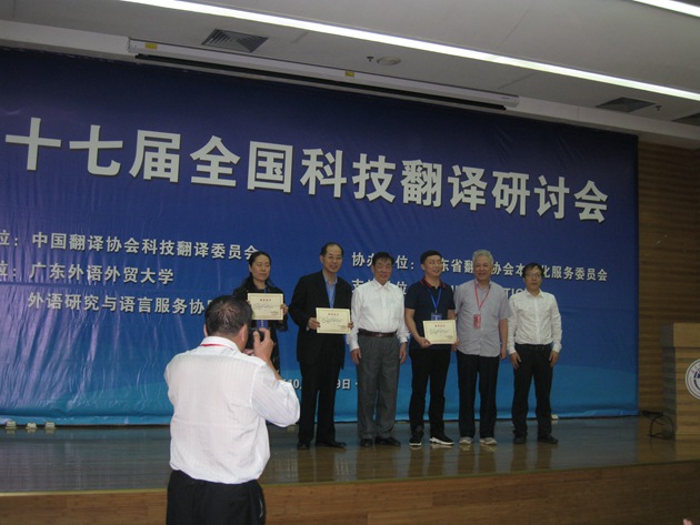 10月28-29日,第十七届全国科技翻译研讨会在广东省广州市召开。本次研讨会由中国科公司科技翻译协会和中国翻译协会科技翻译委员会主办,广东外语外贸大学承办。中国科公司院士、资深翻译家李家春研究员等200多名来自中国科公司、北京大学、清华大学、英国伦敦大学公司等国内外翻译界专家学者参加了会议。122cc太阳成集团白靖宇教授应邀参加本次研讨会并获优秀论文一等奖。