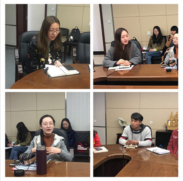 随后,同学们也纷纷发表了自身的感想。英语创新实验班的王裔迪同学在毕业后将出国继续深造,她说到,是国家的发展给予了她如此宝贵的机会,作为外语专业的员工,她决心在出国深造之后回国从事英语教育事业,为国家的发展添砖加瓦。来自甘肃的马雷同学谈到,家乡的树越来越多,风沙天气在逐渐减少, 家乡的环境变化让他深切感受到了国家在环境保护和生态治理方面所取得的成就,也希望作为免费师范生的自己能够在毕业后为家乡的教育事业贡献力量。