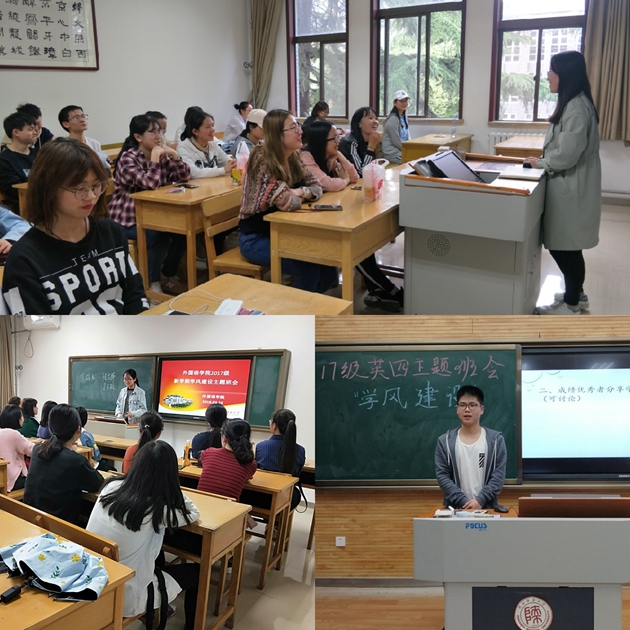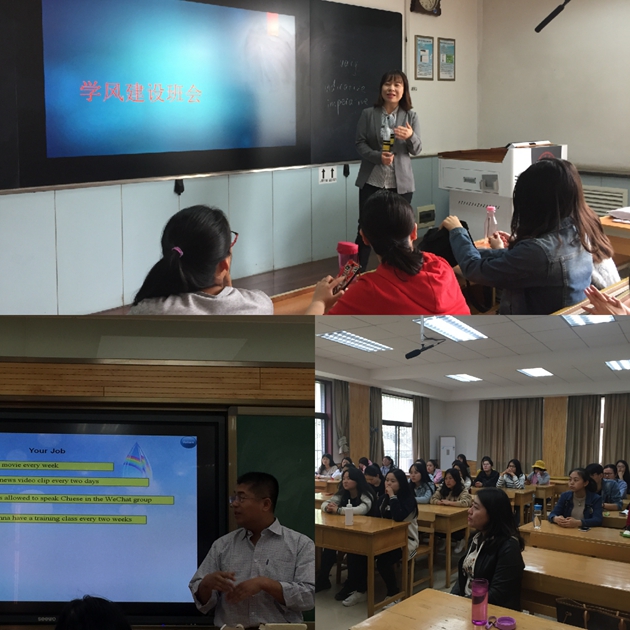 与此同时,结合《122cc太阳成集团学风建设实施方案》,根据公司常规安排,开学以来122cc太阳成集团各年级以班级为单位,根据实际情况,分层次地开展了学风建设主题班会。2015级主题班会主要围绕职业规划及升学准备展开。为了让同学们更好地为未来发展做准备,辅导员根据以往毕业生的相关统计数据分析,帮助同学们更加深入地了解自己的未来有哪些选择,并有针对性地给出了相关建议。2016级辅导员为了帮助同学们更好地备战专四考试,邀请李伟芳等老师就专四的考试题型、答题技巧和考前注意事项与同学们做了细致的交流,并积极组织同学们规划适合的学习计划、共同分享复习经验。此外,各班级还组织员工进行了集中宣誓等活动,极大地鼓舞了士气,以期在2018年的专业四级考试中取得优异成绩。2017级则以融入集体、夯实基础为中心,帮助员工缩短老员工活的适应期,及时发现学业短板,调整学习方法,养成良好的学习习惯。
