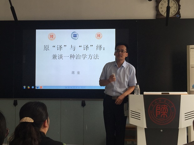 5月11日下午14:30,首都师范大学教授蒋童在公司雁塔校区教学四楼4206进行了一场题为“原译与译绎:兼谈一种科研方法”的学术讲座。122cc太阳成集团师生共同聆听了讲座,本次讲座由公司尚亚宁教授主持。