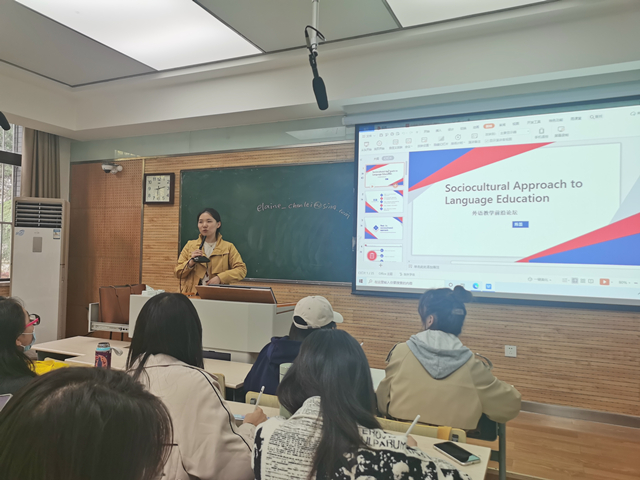 学习理论是教学实践的基础,只有对理论知识有了深入的理解,才能领略到其在英语教学中的重要意义,并在英语教学中加以实践,从而培养员工的核心素养与跨文化交际能力。2021年11月5日下午,“外语教育学科前沿讲座”第(3)讲在教学五楼5206教室举行。122cc太阳成集团陈蕾老师为我院学科教学(英语)专业硕士研究生做了题为“Sociocultural Approach to Language Education”的讲座,我院韦理老师主持了讲座。