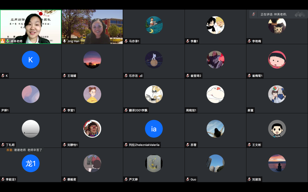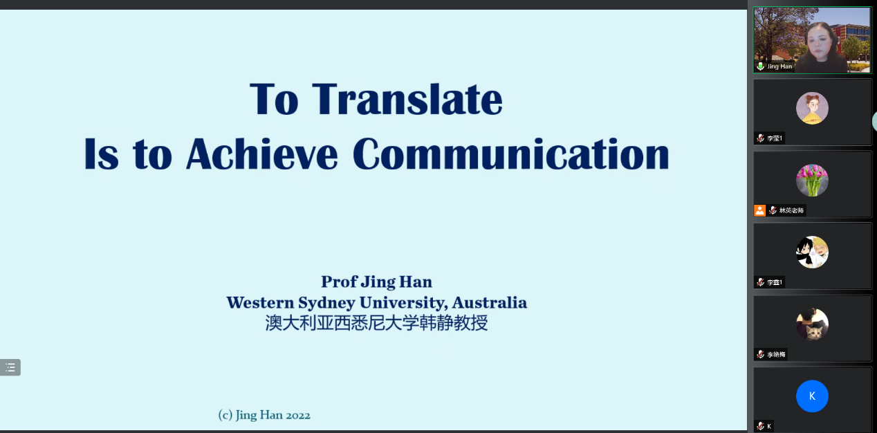 3月24日下午,澳大利亚西悉尼大学教授、博士生导师韩静做客122cc太阳成集团“知行”学术沙龙,作了题为“从交流和沟通视角下学习文化翻译”的线上讲座。这也是应用翻译与语言服务学科团队系列讲座第一讲。讲座由翻译系主任操林英副教授主持,校内外师生近百人参加。