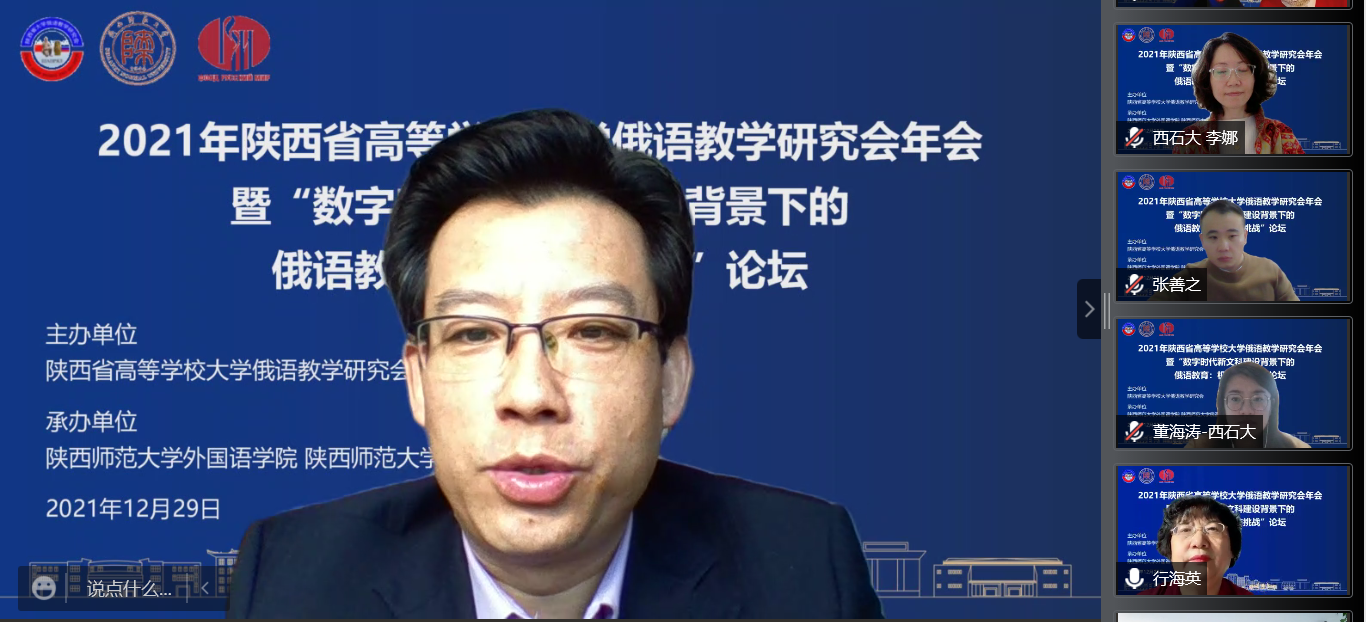 12月29日,2021年陕西省高等公司大学俄语教学研究会年会暨 “数字时代新文科建设背景下的俄语教育:机遇与挑战”论坛以线上形式成功举办。本次会议由陕西省高等公司大学俄语教学研究会主办,122cc太阳成集团俄语中心承办。来自中外高校及教育机构百余名学者和师生线上参会。