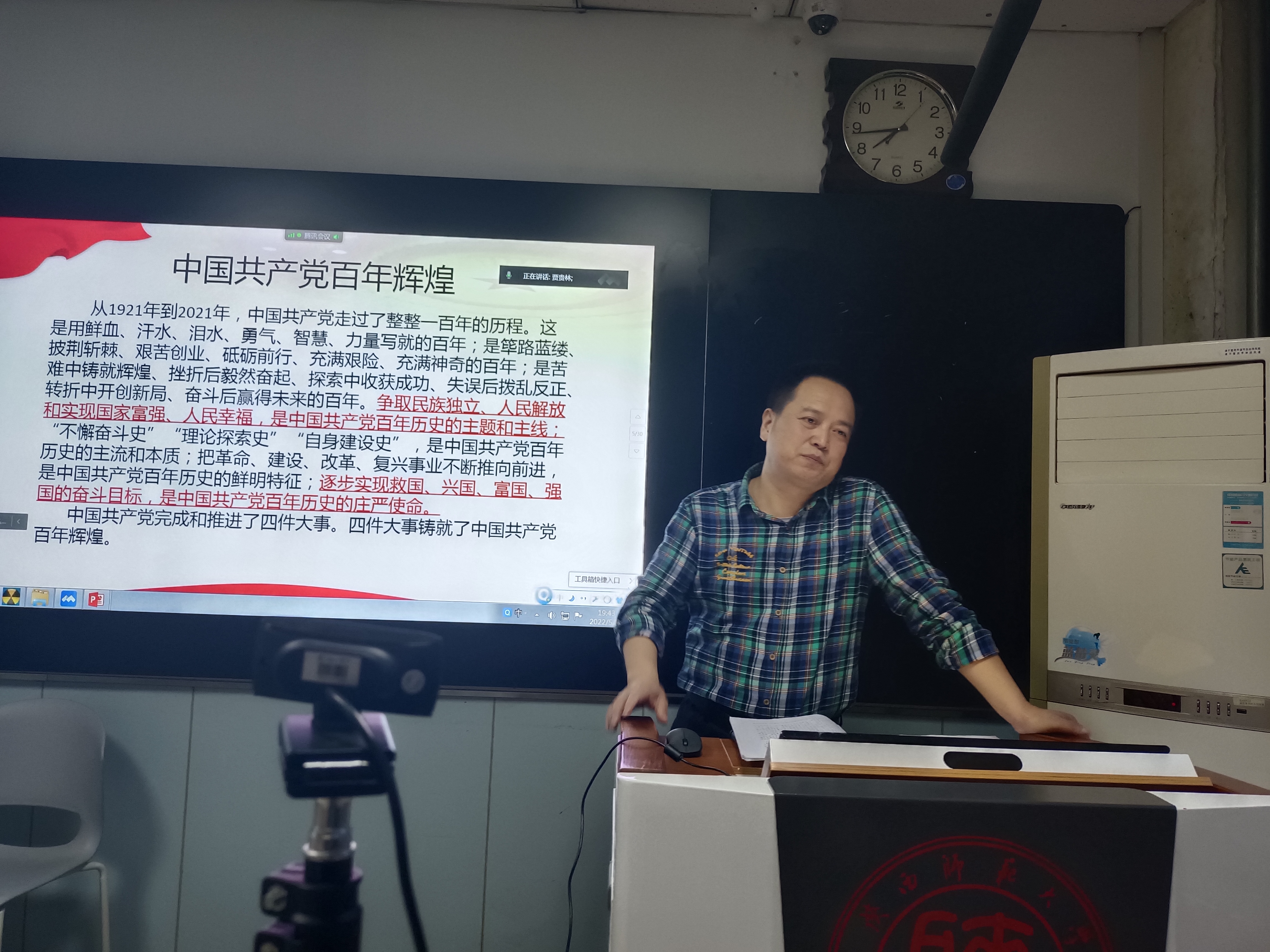 5月19日,在题为《中华民族伟大复兴的战略全局与老员工的时代使命》的专题报告上,董增云老师分别用开天辟地、改天换地、翻天覆地、惊天动地四个成语概括了中国共产党百年奋斗的光荣岁月,分析了中华民族伟大复兴的战略全局与老员工的时代使命。他号召同学们要以习近平新时代中国特色社会主义思想为指引,积极投身实现中国梦的伟大实践,让青春在为祖国、为民族、为人民、为人类的不懈奋斗中绽放绚丽之花。