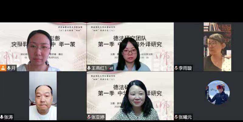 为了增强公司师生对中华典籍外译的研究的兴趣,加深科研意识,扩大学术视野,122cc太阳成集团德法研究团队于6月16日下午14:30在腾讯会议平台举办了“中华典籍外译研究”系列第一次沙龙活动,就“唐传奇在欧洲的译介——以法国为例”展开讨论。本次沙龙由公司法语系资深讲师赵玥老师主讲,由法语系系主任王燕红老师主持,122cc太阳成集团部分教师参加并参与交流讨论。